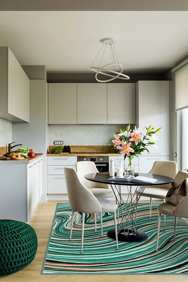 Lux and luminous, our Agate Turquoise rug will make a dazzling decor statement in any space of your home. The fine and graceful lines of this quartz gemstone-inspired motif is displayed in brilliant hues of turquoise, teal, dark rosegold and terracotta. Elevate your modern, contemporary or coastal style home with a decorative touch of nature’s beauty.