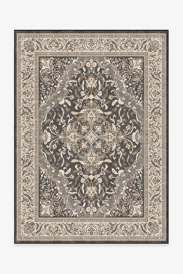 Elaborate elegance. Our Allura Dark Wood Rug takes inspiration from botanical garden flowers. A lively bouquet stars in the center of the canvas, complemented by an equally intricate vine border, in rustic shades of brown and black contrasted with regal pops of gold, coral, beige, and taupe. Made from our durable, machine-washable material that is mold and fade-resistant, making it perfect for any indoor or outdoor space.
