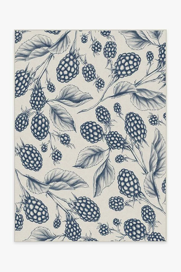 Flavor any room with the sweetness of berries with our Berry Blue Rug. Tinted in blue on bone, this unique design is hand-drawn using crosshatching technique to make the berries pop, while watercolor wash lends the leaves and vines a subtle swaying effect.