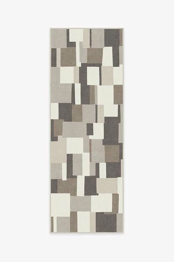 Blockera Natural Rug features a series of random blocks of color to create an interesting pattern resembling an enlarged, pixelated photo of architecture in earthy hues of taupe and oyster.
