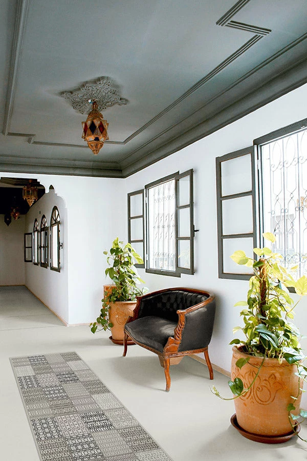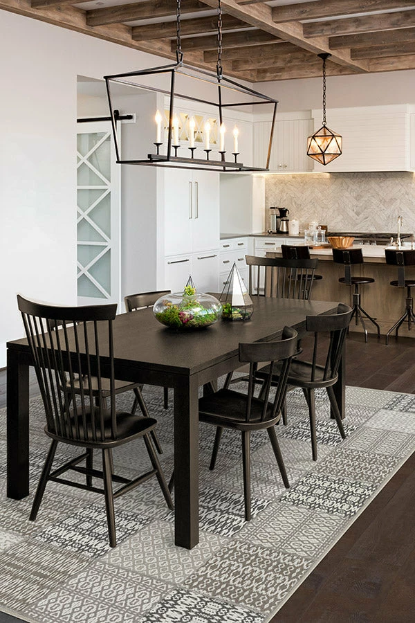 Chima Walnut Rug makes a great centerpiece to any space. This earth-colored rug features a patchwork of intricate patterns, tinted in earthy hues of taupe and pewter.