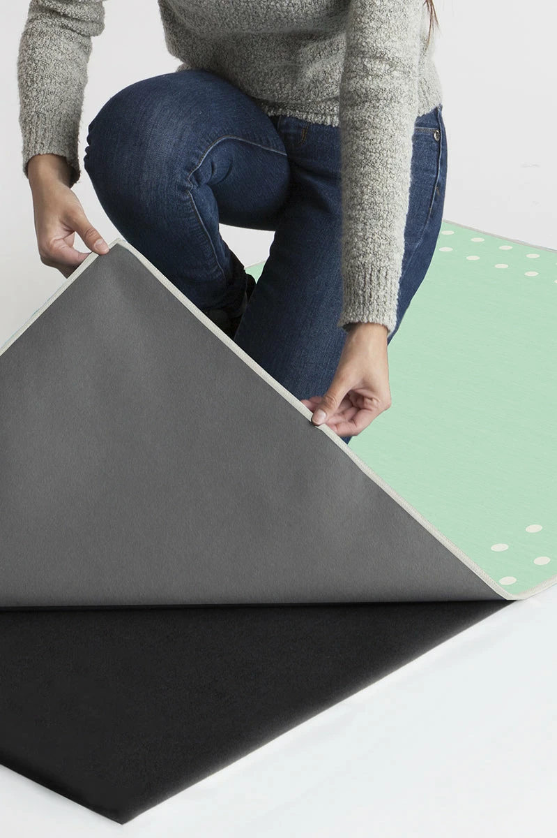 Our Dot Border Mint Green Rug combines simple sophistication with trendy, soothing colors. This rug, which features a solid field of mint green bordered by tiny white dots, adds flavor and style to any nursery, kid’s bedroom or playroom.
