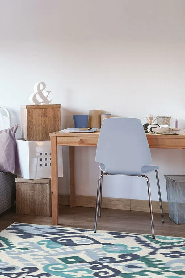 Patterned after the ikat dyeing technique, the Eisley Teal Rug is beautifully hand-drawn in a cheerful blend of teal and navy blue hues. This take on a classic motif imparts a bohemian-chic style to any tween or teen space.