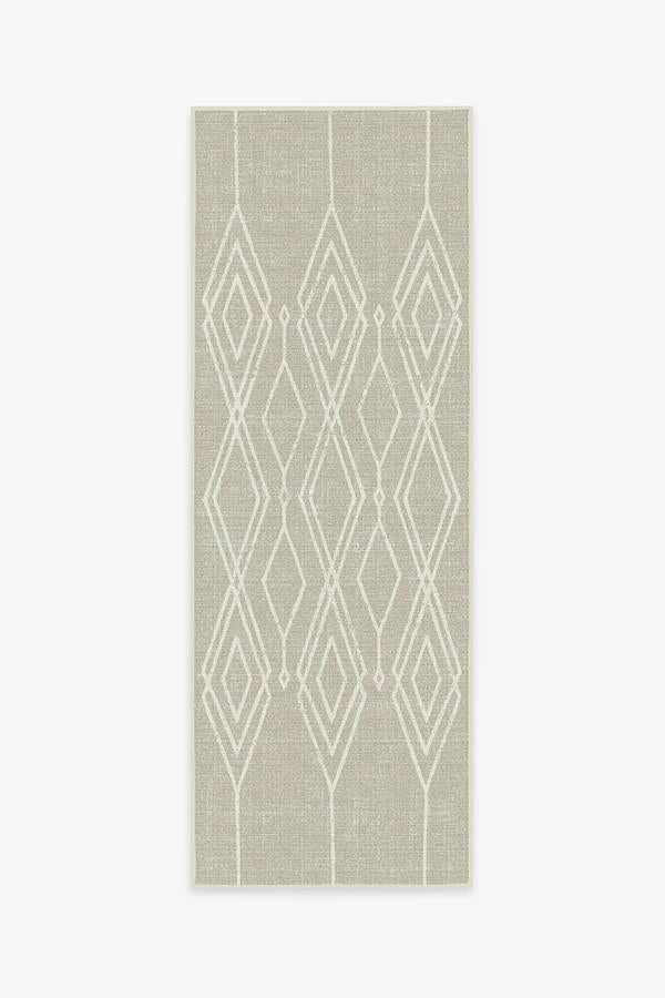 A boho take on a classic design. This simplified lattice motif features a white-on-natural color and an elongated diamond pattern that’s slightly distressed to mimic a woven texture. Made with an extra-durable, machine-washable material designed to withstand dust, dirt, and heavy foot traffic indoor or outdoor.