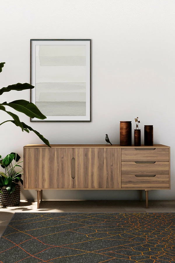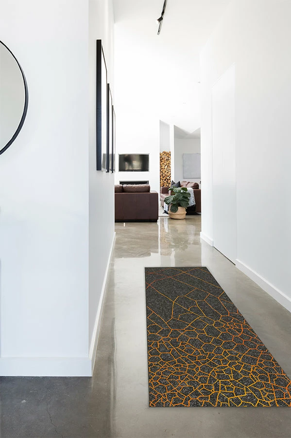 Layer your home’s interior decor with energetic geometric design by adding our Kella Sunburst floor covering. Fine, graphic lines are colored in a gradient sunburst of rust red, rust orange and Danish yellow over a background of neutral greys. This unique decorative piece will create interest and visual texture to any modern, contemporary, or mid-century modern space.