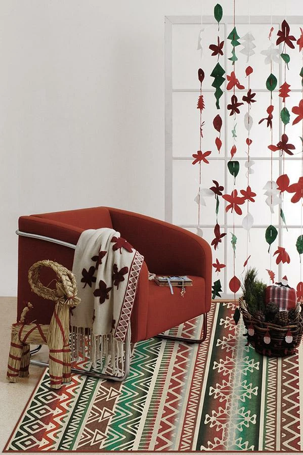 Your new seasonal favorite. Our stylish Linear Diamond Holiday Rug blends jovial hues of leaf green and farmhouse red for an on-trend holiday accent. Made from our water-resistant, stain-resistant, and machine-washable low-pile Chenille material.