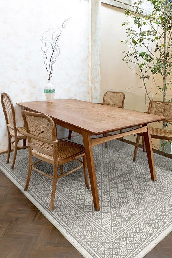 It’s all about the details. This cream and grey outdoor rug features small diamonds strategically placed to form a detailed tile pattern with an ornate border. Durable, machine-washable, and easy to clean, this rug holds up well in high-traffic indoor or outdoor spaces.