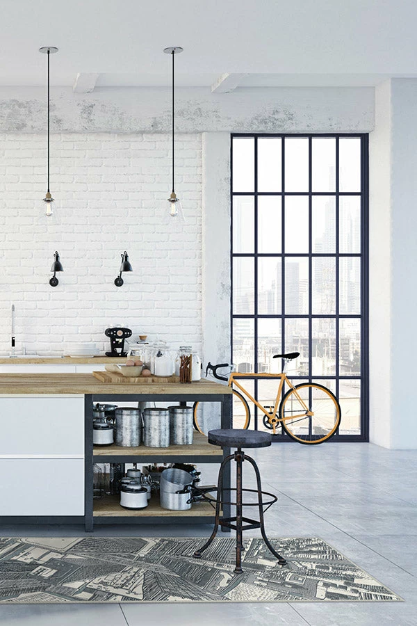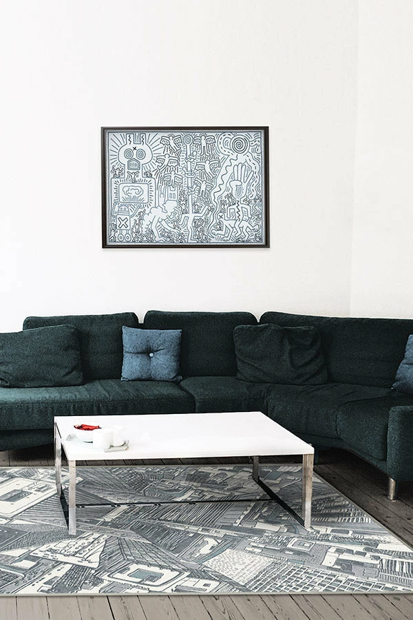 Take your contemporary home decor to new heights with Lux Slate Blue Rug, which showcases an aerial view of a modern city skyline. Featuring clean lines, hand-drawn in various tones of blue and green on pearl, this rug design perfectly illustrates the quintessential urban life.