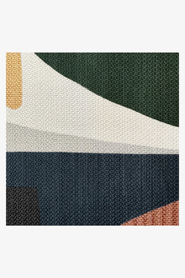 Funky and abstract. Our Medley Multicolor Rug features a design of organic shapes found in nature juxtaposed with man-made architecture. Shades of navy blue, grey, and dark green pair with pops of yellow, coral, and tomato red. The extra-durable, machine-washable material is perfect for both outdoor and indoor use, especially high-traffic areas and those exposed to the elements.