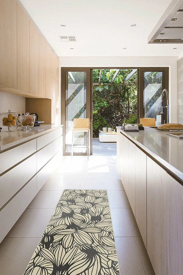 Inspired by the Finnish prints of Marimekko, our Meena Black & White rug features a modern-retro floral motif with bold line work in neutral grey on cream.