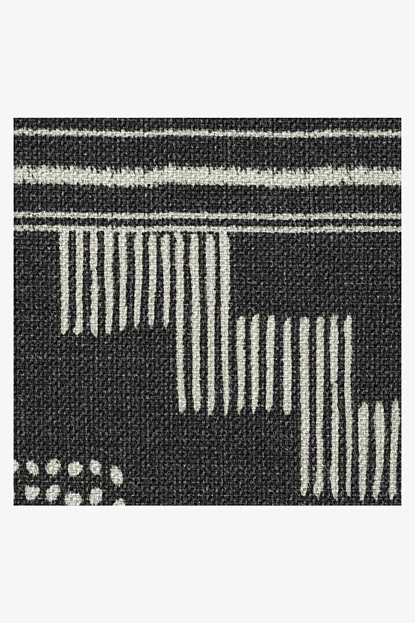 An intricate statement-maker. Our Meseta Black Rug features a modern geometric design showcasing layers of lines, dots, and blocks resembling rocky terrains tinted in high-contrast colors of black and off-white. The extra-durable, machine-washable material is perfect for both outdoor and indoor use, especially high-traffic areas and those exposed to the elements.
