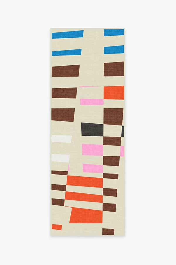 Tiny umbrella not included. Inspired by the shapes of a cut-up pineapple, our Monica Ahanonu Pineapple Rug features an eclectic blend of colors including cream, chocolate, strawberry pink, cerulean blue, and orange. The extra-durable, machine-washable material is perfect for both outdoor and indoor use, especially high-traffic areas and those exposed to the elements.
