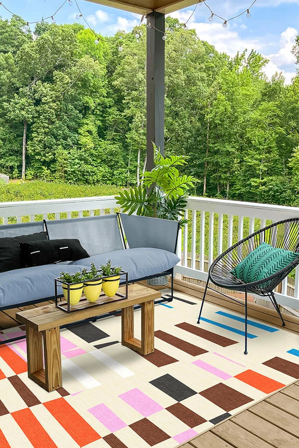 SKU: 6662298271799 Category: 3x5 Outdoor Rugs Tags: Abstract, All, Collaboration:Monica Ahanonu, Color:Brown, Color:Multicolor, Color:Orange, Color:White, Contemporary, geometric