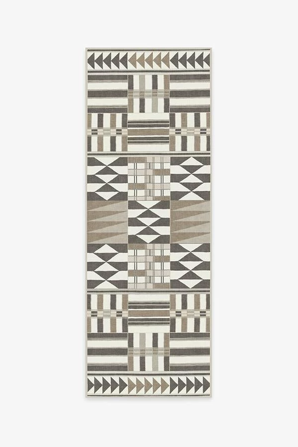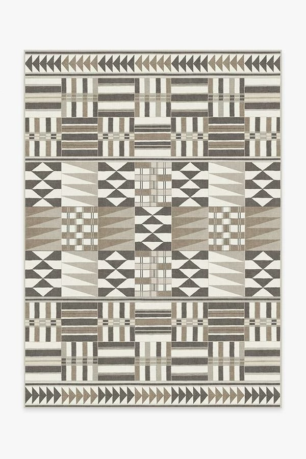Our Obi Walnut Rug is named after the African word for “heart” and inspired by kente, a sacred Ghanaian fabric. The pattern-rich motif features a series of geometric shapes in neutral tones of taupe and grey with oyster accents.