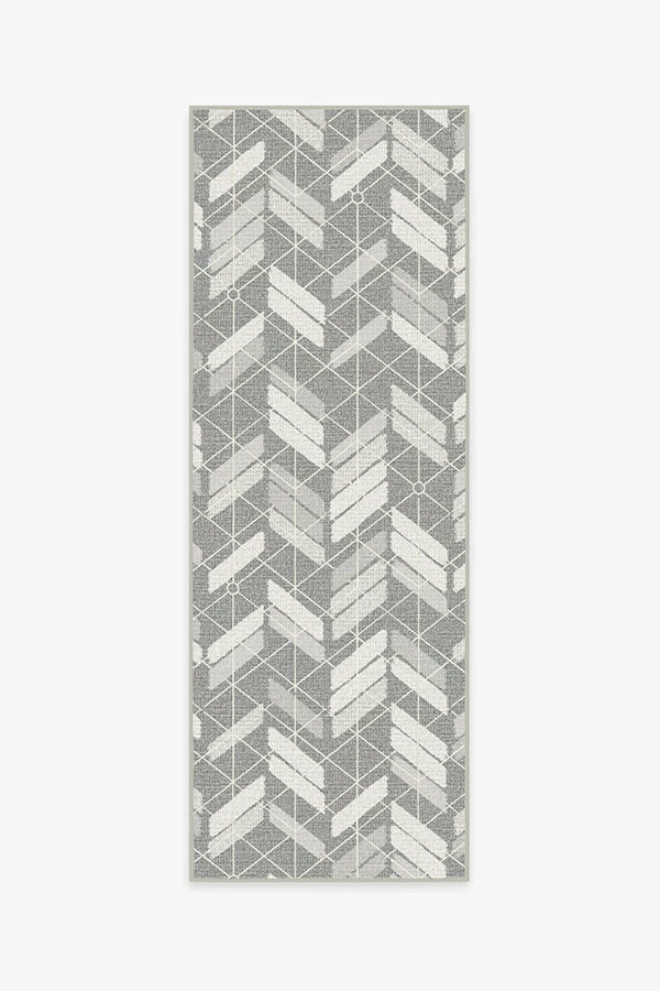 A charming choice for any space. Our Painted Chevron Grey Rug features a modern herringbone pattern with a painted effect in neutral shades of light grey and off-white. The extra-durable, machine-washable material is perfect for both outdoor and indoor use, especially high-traffic areas and those exposed to the elements.
