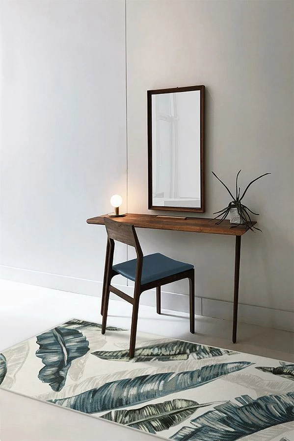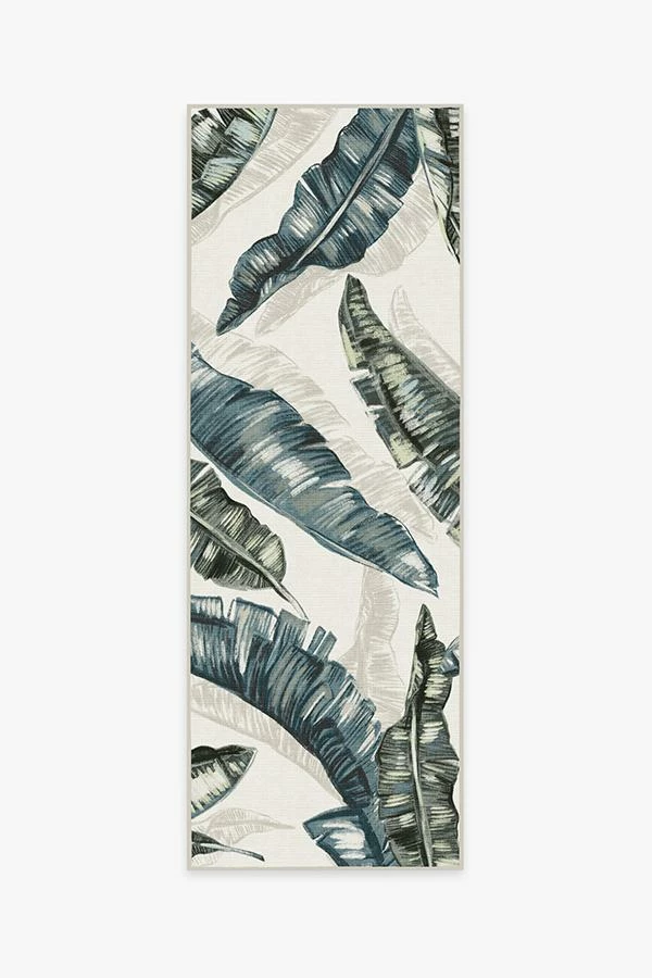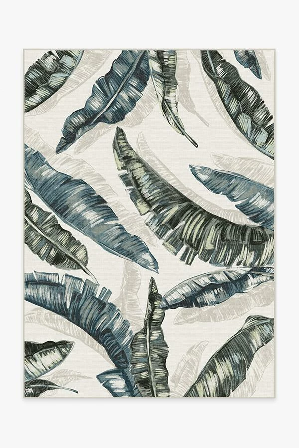 Create a tropical vibe in your home with the Palma Jade Rug. Featuring arching banana palm leaves in various shades of green and blue on cream, this design was created using an expressionistic style, lending a sense of movement and calm.