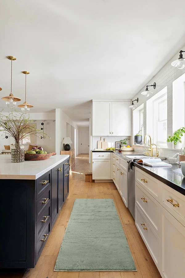 Calming and comfortable. Our Sage Green Plush Rug features a muted green color and is made from a super soft, high-pile furry material that will provide relaxing vibes to any room in your home. Water-resistant, stain-resistant, and machine-washable.