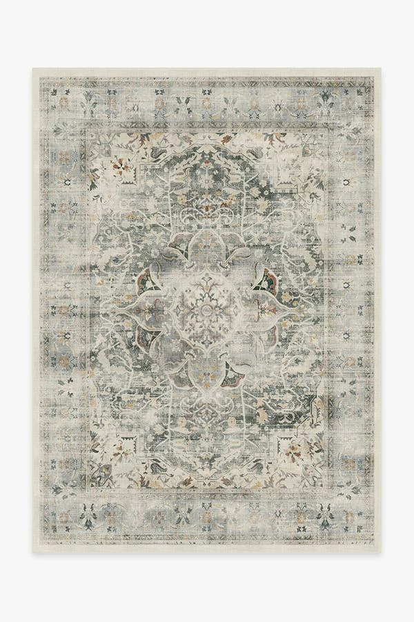 Rustic and earthy. Our Sarrah Sage Rug features a floral medallion and decorated border in shades of sage and hunter green, orange, gold, beige, taupe, and blue. Made from our water-resistant, stain-resistant, and machine-washable low-pile Chenille material.