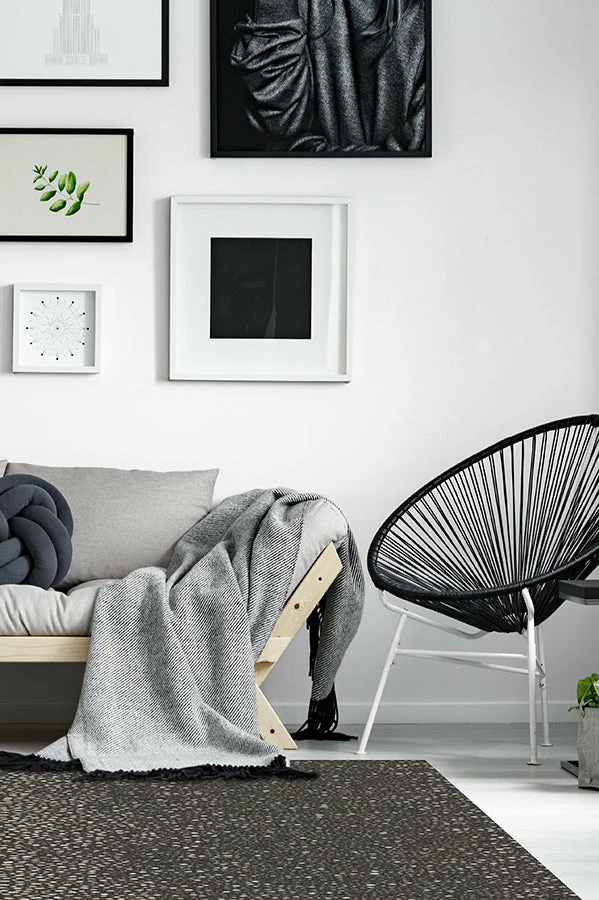 Heighten your home’s interior decor with our exquisite Shagreen Charcoal rug. Its organically opulent motif was designed to mimic the pointillistic pattern of a shark’s or stingray’s hide, with a dappling of charcoal, pearl and paris grey colors. Enrich your modern, contemporary or eclectic home furnishings with this unique, decorative accent.