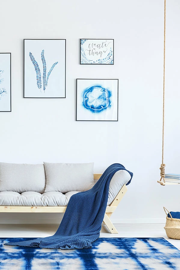Designed to celebrate the ancient Japanese art of hand-resist dyeing, our Shibori Ichi Indigo rug is the perfect choice to bring exotic beauty to your home interior. This cloth-dyed motif, displayed in indigo and deep ocean blue hues, enjoys a one-of-a-kind charm. Perfectly suitable to embellish your modern, contemporary or Bohemian style furnishings.