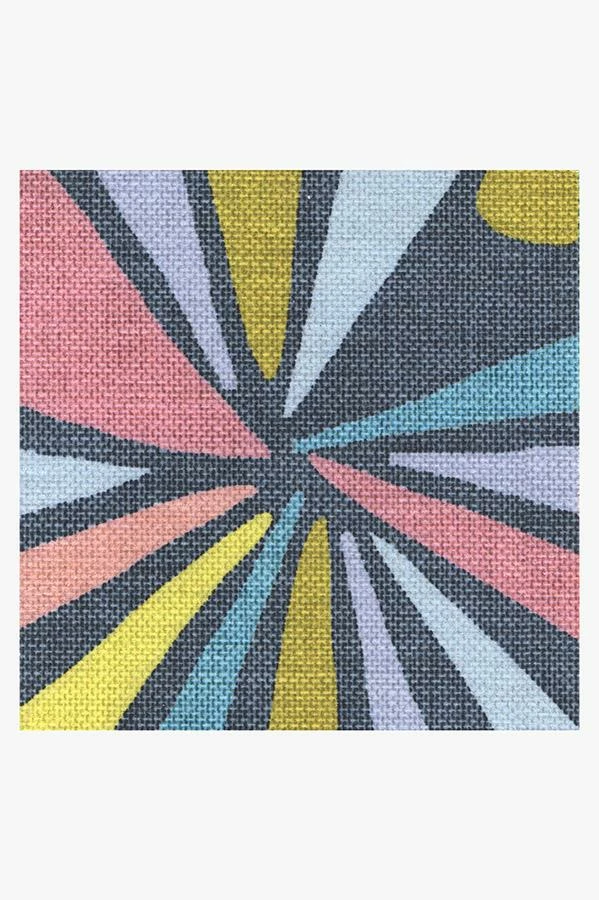 Sunburst Teal Rug captures the excitement of a fireworks display in fresh hues of cotton candy pink, turquoise blue, and chartreuse green. This allover motif features hand-drawn triangles arranged to look like sparklers, creating a fun yet sophisticated design to enliven any child’s room.