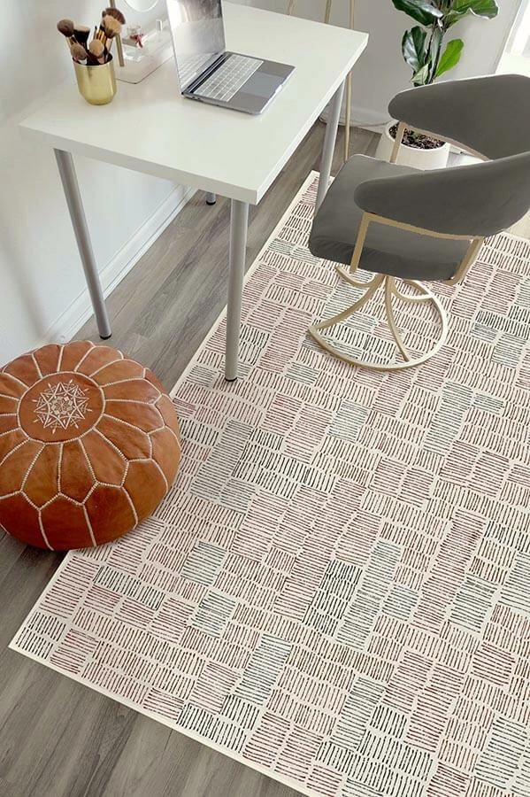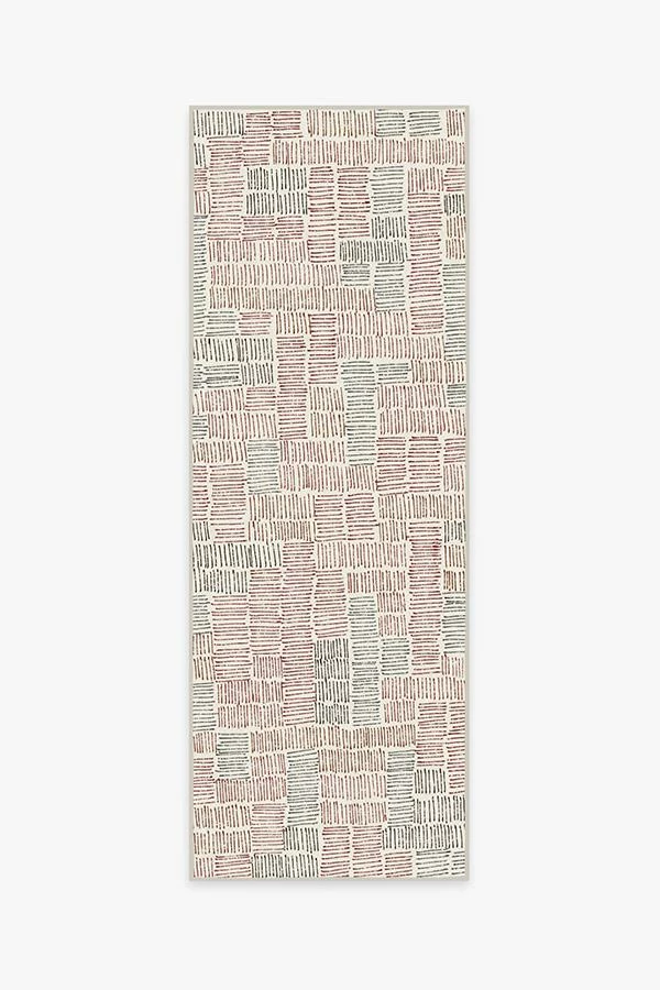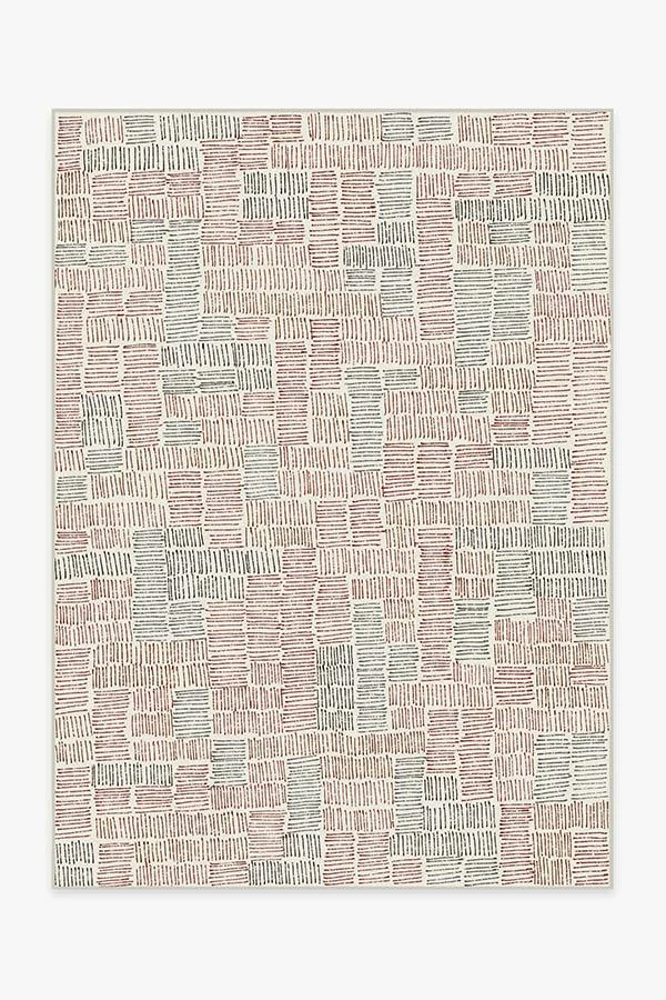 Our contemporary Thalia Red rug uses various squares of hand-drawn hatchwork in red and grey on light cream.
