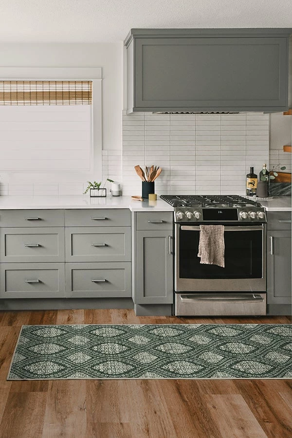 Defend your home with help from Captain America. The Soldier’s Shield Deep Forest Rug features an ogee-style pattern made up of eight of Captain America’s shields in dark forest green and off-white. Made from our water-resistant, stain-resistant, and machine-washable low-pile Chenille material.