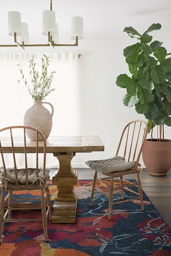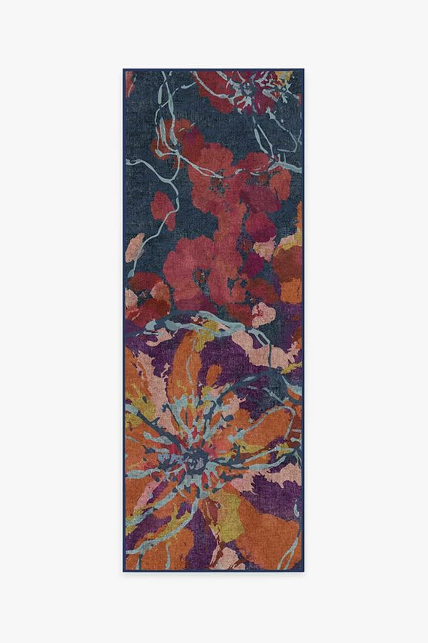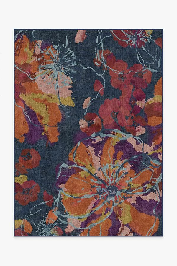 Bring an instant wow-factor to any room by placing our Watercolor Floral Navy rug. Brilliant brushstrokes of color blend together to create a dramatic and abstract floral motif, its navy-hued background adds depth and dimension. Effortless and exciting, this floor decor piece will perfectly suit any urban or suburban style home.
